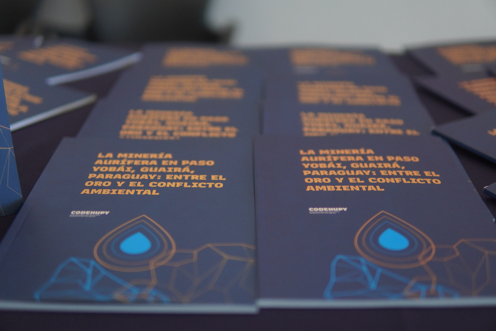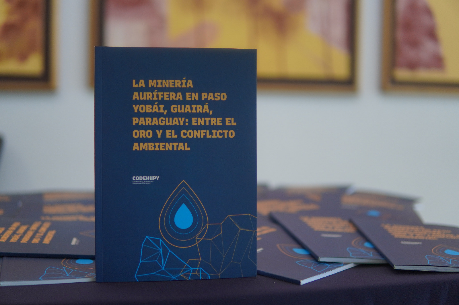 Diseño editorial sobre la Minería Aurífera en Paso Yobái, Guairá, Paraguay: Entre el Oro y el conflicto ambiental - Presentado por la Codehupy 2025.